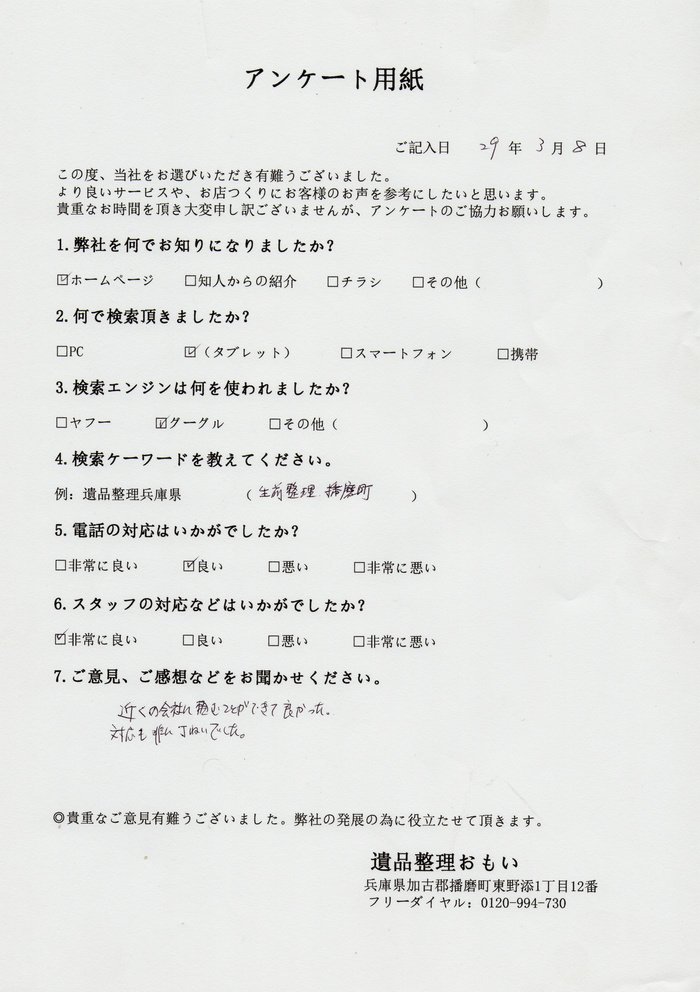 この度遺品整理おもいを選んで有難うございました。ご満足頂けて、本当に良かったです。